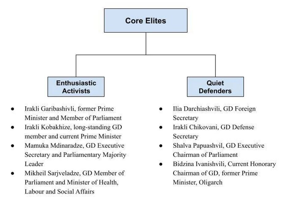 The Enthusiastic Activists are characterized by a high degree of hostility toward the West. This group is made up of the highest-ranking elites in GD, such as current Prime Minister Irakli Kobakhidze and former Prime Minister Irakli Garibashvili. Though the Enthusiastic Activists regularly give statements in support of Ukraine, at times they also make statements blaming both sides for the conflict, or offer an apolitical argument in favor of peace. In response to the criticism that Georgia has not put in place financial sanctions, the Enthusiastic Activists say that Georgia has already introduced limited sanctions and provided support to Ukraine via UN votes and humanitarian aid, while arguing that sanctions risk conflict with Russia and noting Western hypocrisy given the lack of action during Georgia’s 2008 war with Russia.
