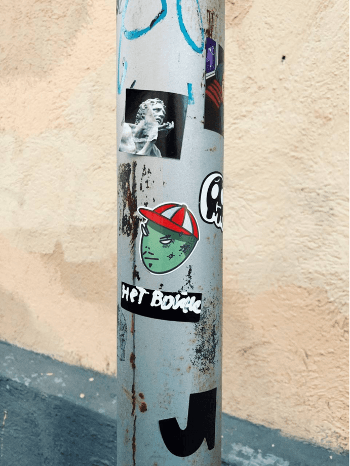 Starting in the very first days of the war, numerous anti-war symbols and messages have cropped up in many cities. Scratched in, pasted on, and applied with stencils, they’re found everywhere — on houses, on poles, on the backs of buses, including many full-scale, professionally executed graffiti.