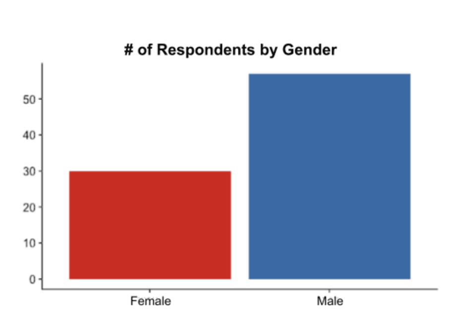 Below, we describe our subject pool according to 5 characteristics: gender, age, education, income, and geographic location. The ratios shown in the graphs below in no way indicate that this is how the gender, age, education, and income of non-war opponents are distributed throughout Russia. On the contrary, it shows the specific makeup of our study sample and the ways in which it is skewed. Respondent Gender