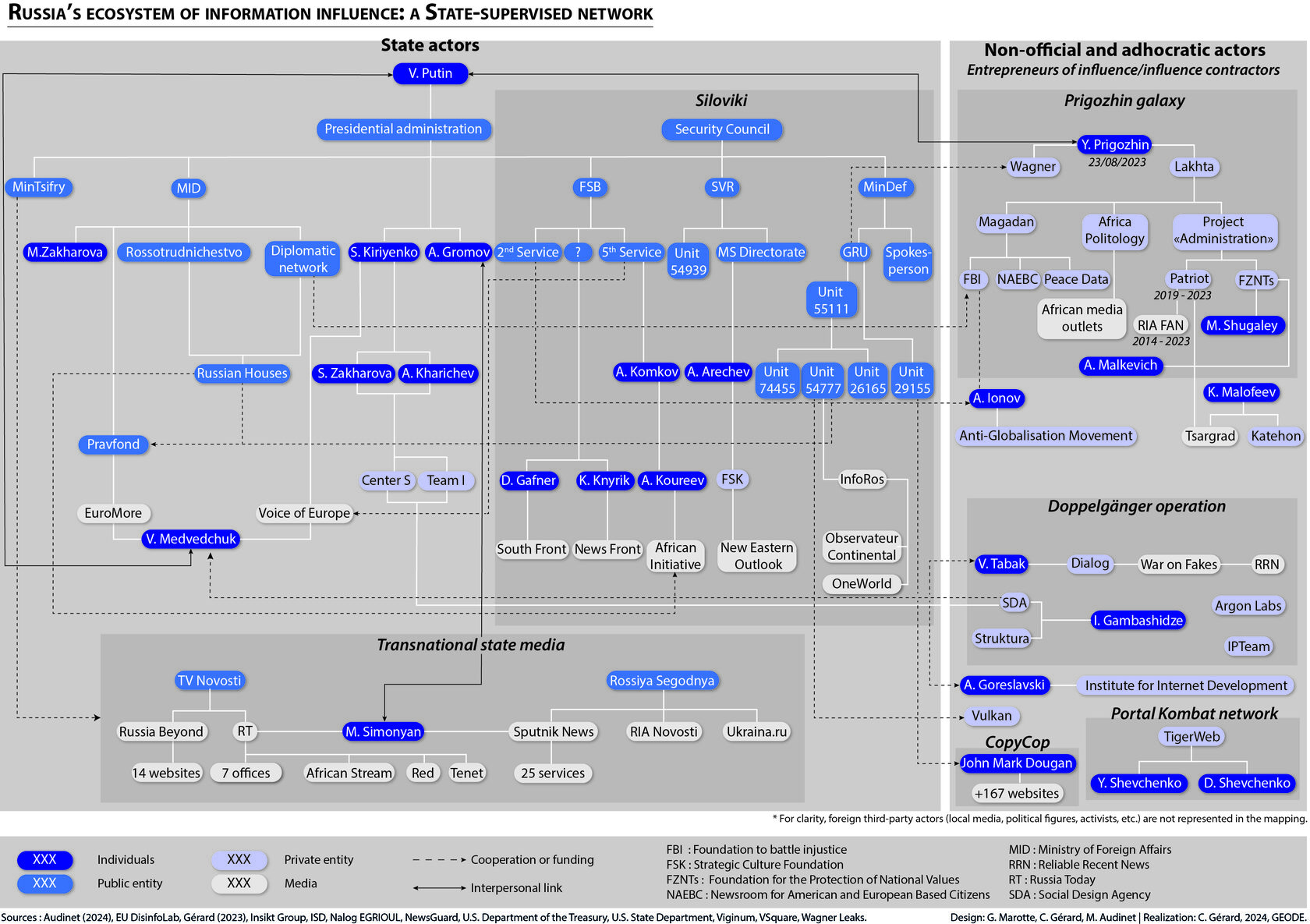 Audinet, M., & Limonier, K. (2022). Le dispositif d’influence informelle de la Russie en Afrique subsaharienne francophone : un écosystème flexible et composite. Questions de communication, 1(41), 129-148.