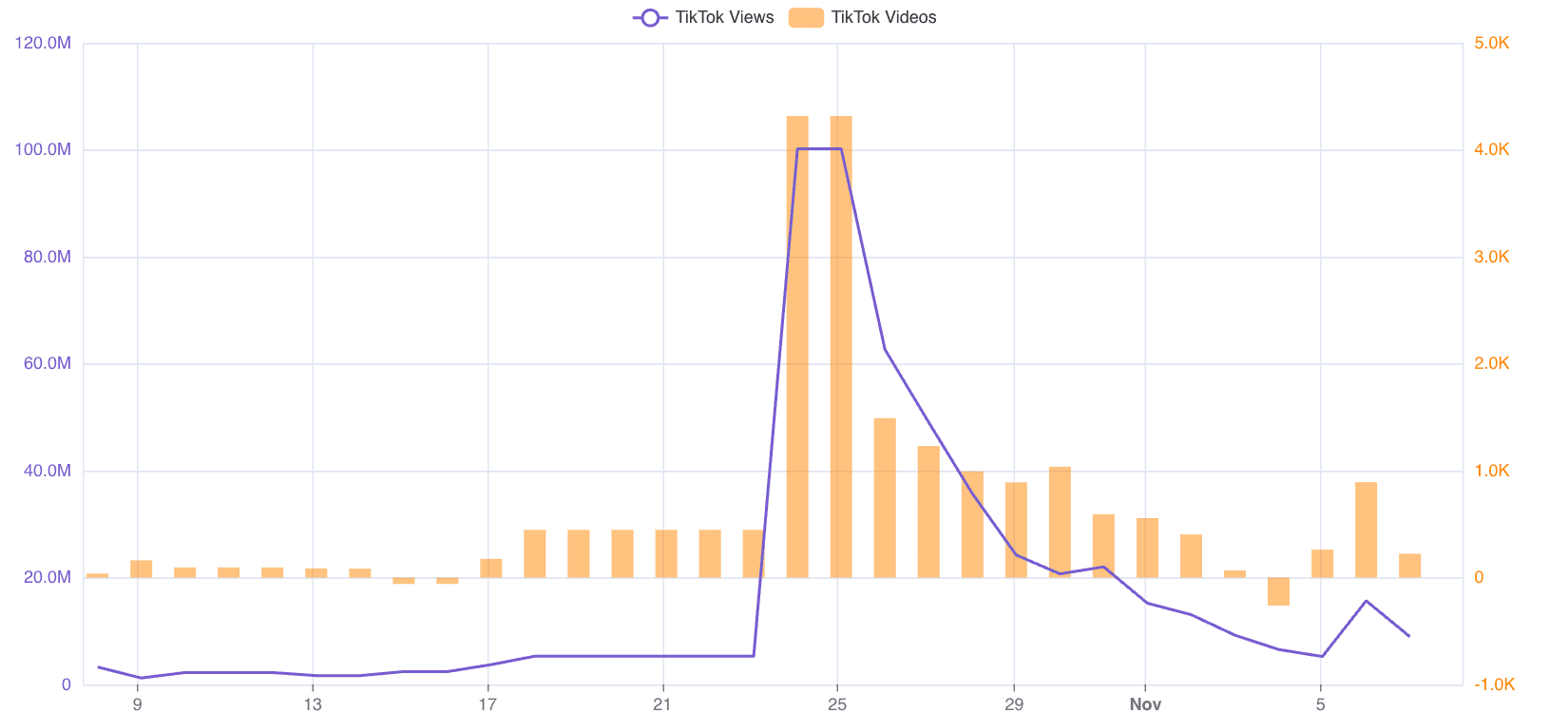 The distribution of daily number of posts and views (source: Exolyt)