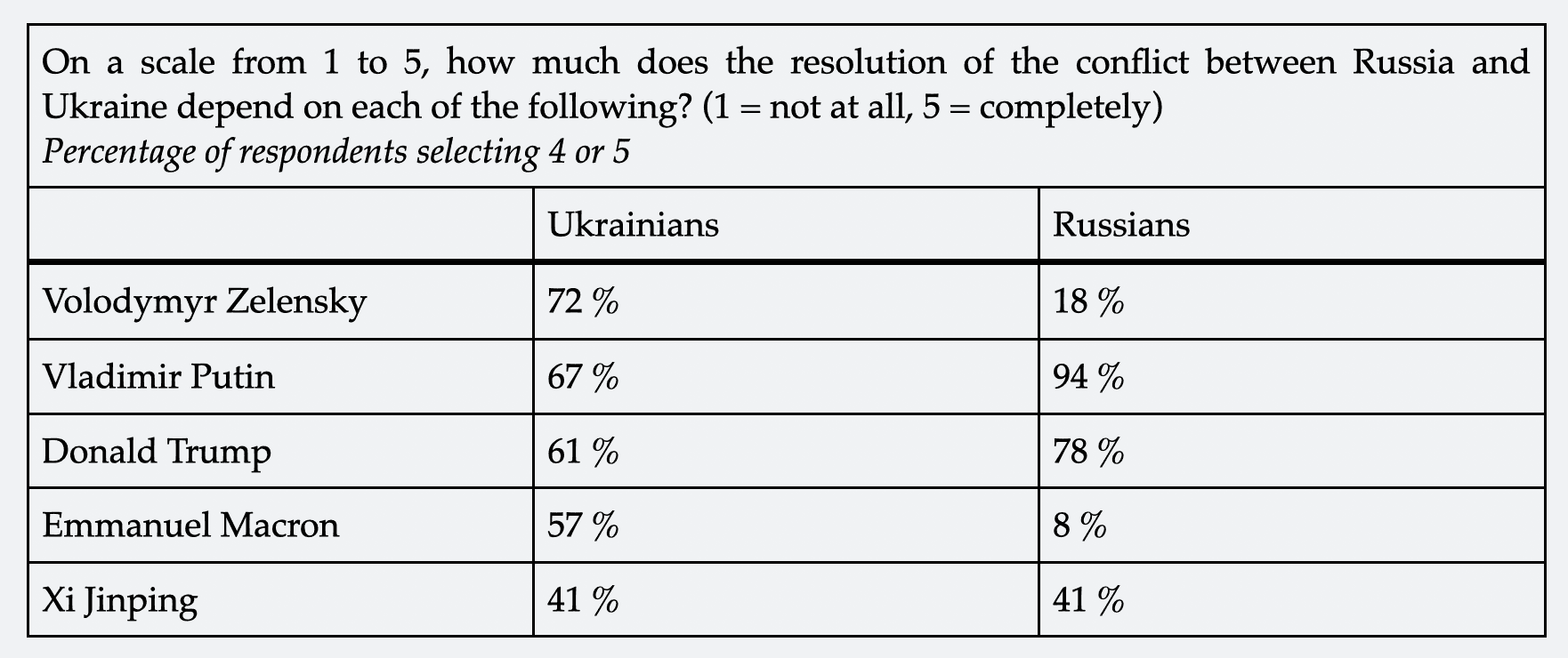 Fig. 1. Perceived influence of world leaders on resolving the Russia–Ukraine conflict