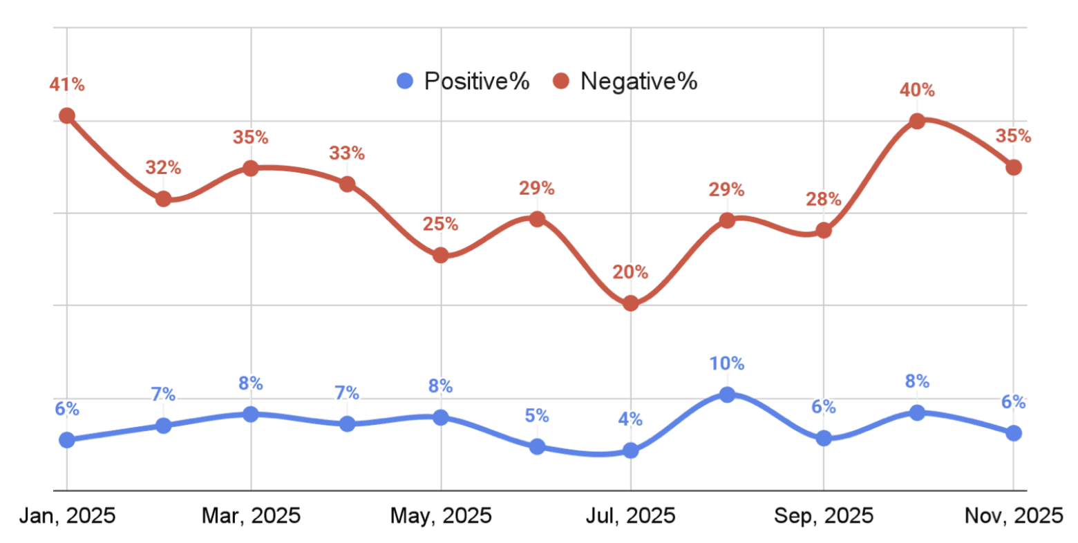 Meanwhile, Ukrainians are increasingly skeptical of whether Trump’s peace efforts are good for Ukraine: in an October 2025 poll, 52% said they believed Trump was pushing Ukraine toward territorial concessions in favor of Russia.