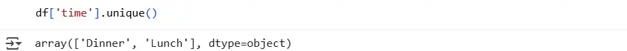 When we work with a large DataFrame, for variables that are described by a nominal scale, it may be important for us to understand what values it consists of. For this we can use the unique() method. For example, you can find out what value an observation in the time column can take: